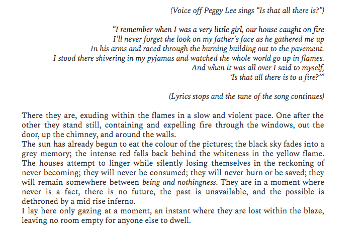 Is that all there is? 2017 This text is part of the exhibition There was no thought, but a thrive for the visibility of something yet to be named. To see the video go here. Back